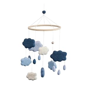 Sebra – Filz-Babymobile – Wolken – denim blue – Wolle / Holz – H: 57 cm – D: 22 cm