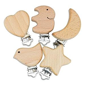 HENTEK 5 Stück Schnuller Clip Nuckelclip Baby Clip Metall Holz Schnullerclip Säugling Schnuller Verschlüsse Halter…