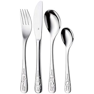 WMF Janosch Kinder Geschirrset 6-teilig, Kindergeschirr mit Kinderbesteck Edelstahl, ab 3 Jahre, Cromargan poliert…