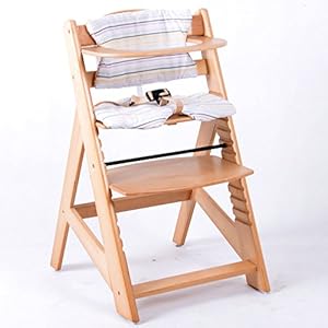 TIGGO Hochstuhl Treppenhochstuhl Babyhochstuhl Kinderhochstuhl Kindertreppenhochstuhl Babystuhl (natur-Kissen creme…