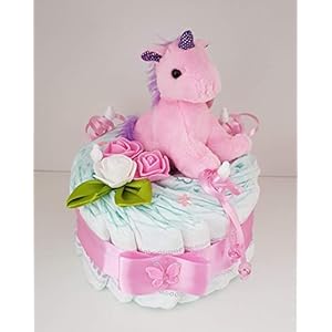 Windeltorte rosa, Geschenk zum Geburt, Taufe, Babyparty Mädchen, Einhorn, Windeln“Pampers“ Gr.3