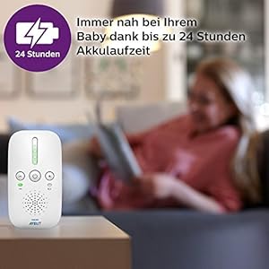 Das audio-babyphone SCD503/26 von Philips AVENT bietet einen private und störungsfreie Verbindung dank sicherer dect-technologie. Mit dem eco-modus für minimale Übertragung sparen sie Energie. Dank einer Betriebszeit von bis zu 24 Stunden, sind sie Ihrem Baby immer ganz nah. Die Reichweite beträgt in innenräumen bis zu 50m und im außenbereich bis zu 300m (Reichweite kann aufgrund externer faktoren variieren). das Nachtlicht wiegt Ihr Baby sanft in den Schlaf. Mit Geräuschpegel-, Verbindung- und batteriestandsanzeige. Das Philips Avent Babyphone funktioniert bei einem Stromausfall nur dann, wenn geladene Batterien in die Babyeinheit eingesetzt sind und die Elterneinheit ausreichend aufgeladen ist. Denken Sie daran, die Babyeinheit nach einem Stromausfall durch Drücken der Ein-/Ausschalttaste neu zu starten.