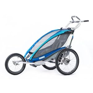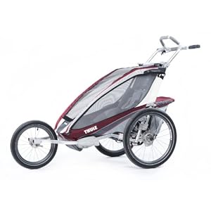 Kinderleicht verwandelt sich der Chariot zum vollwertigen Jogger. Die Deichselarme und das gro ße Vorderrad k önnen problemlos mit einem Klick an die Sportmodelle Cougar, CX und CSL befestigt werden.
