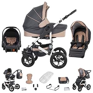 Bergsteiger Capri Kinderwagen 3 in 1 Kombikinderwagen Megaset 10 teilig inkl. Babyschale, Babywanne, Sportwagen und…