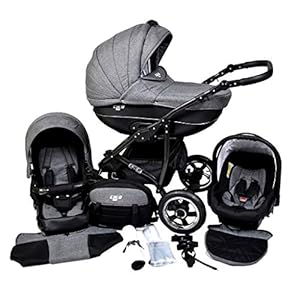 Boston GaGaDumi 3in1 Kombi – Kinderwagen Liegewanne Buggy Autositz Carlo TÜV-Zertifikat!!! (B1-Grey jeans)